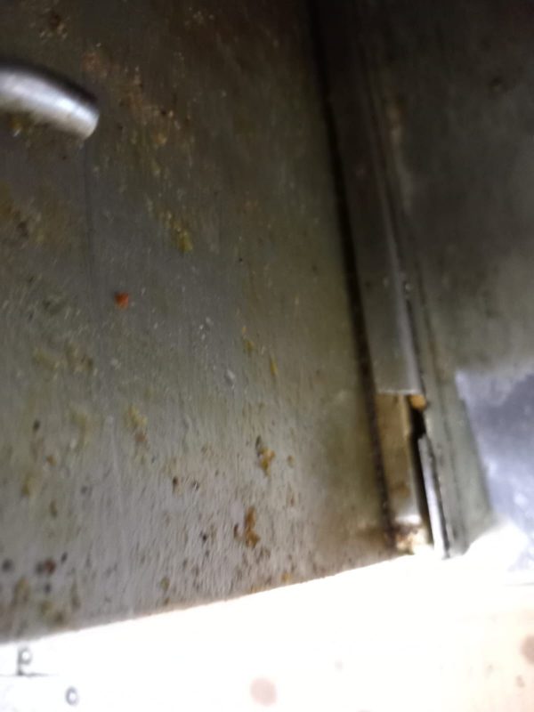 condiții igienico sanitare necorespunzătoare – scursuri de ulei ars, suprafețe de lucru cu rugină;