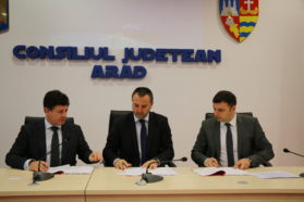 Proiectul de gestionare a deşeurilor a intrat în linie dreaptă. Astăzi, la sediul Consiliului Judeţean Arad, a fost semnat contractul de concesionare a serviciului de salubrizare (colectare şi transport) pentru zona I a judeţului Arad.